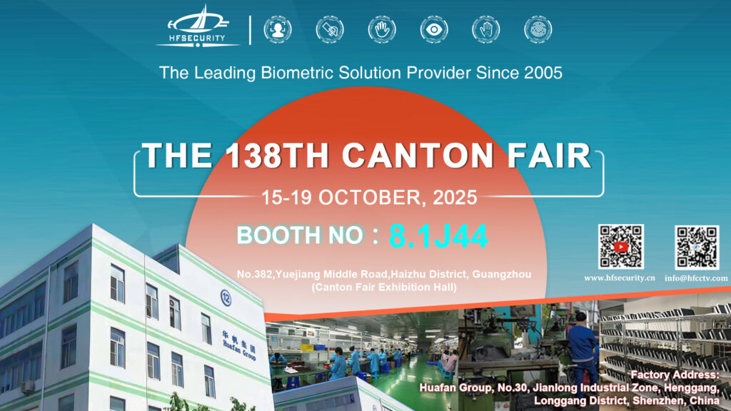 HFSECURITY is ready to showcase our latest biometric and security solutions at the 138th Canton Fair! From October 15 to 19, 2025, visit us at Booth 8.1 J44 to experience our cutting-edge products, including fingerprint scanners, facial recognition devices, palm vein recognition systems, turnstile gates, and more.