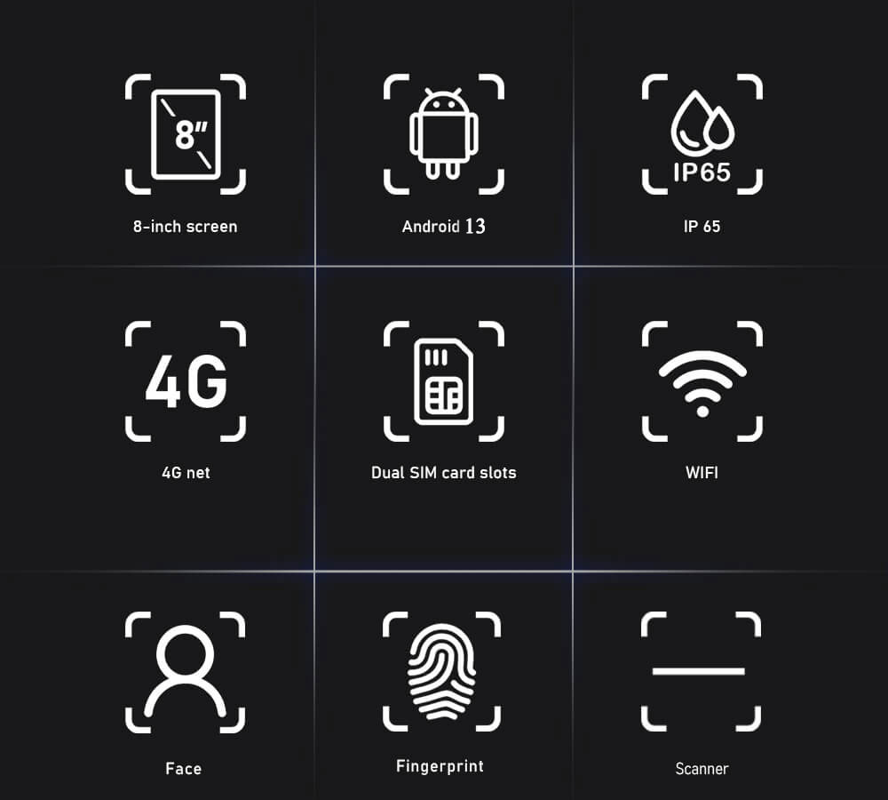 FP08 8 inch Android 13 Biometric Tablet. This device is perfect for businesses and organizations that require advanced security features to protect sensitive data and assets.Biometric Tablet. This device is perfect for businesses and organizations that require advanced security features to